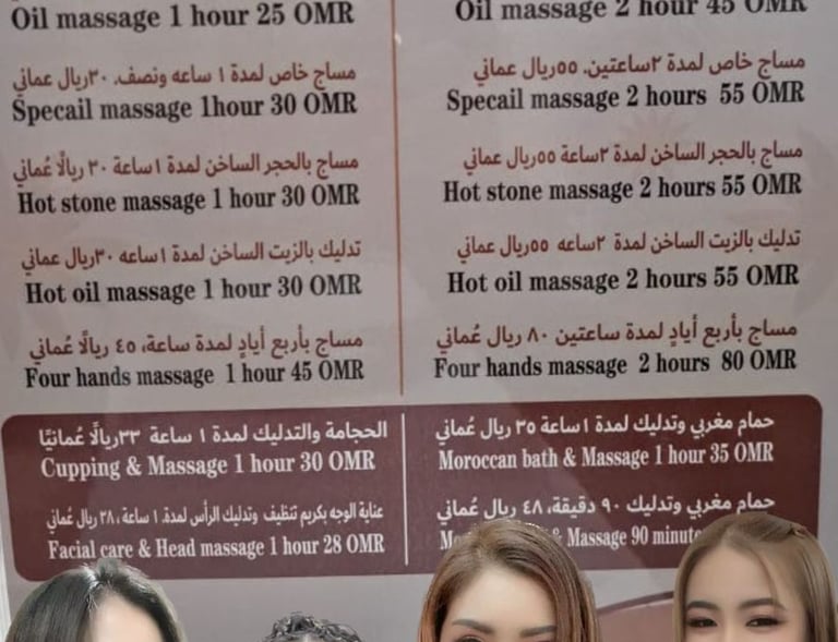Expert massage from ladies skilled in Arabic, Vietnamese, and Chinese styles.